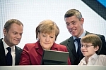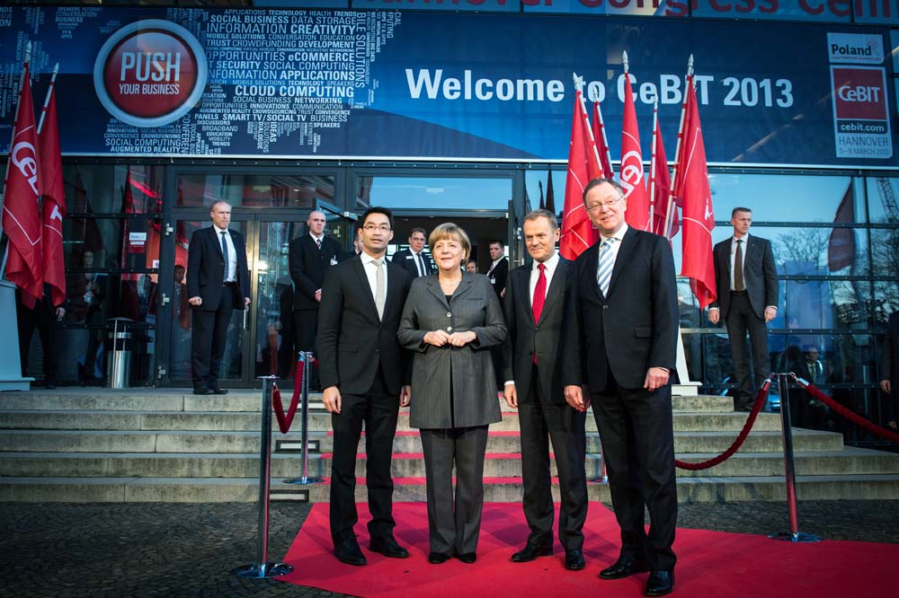 (po lewej: Donald Tusk, premier Polski, r:. Christian Illek, prezes Microsoft w Niemczech).